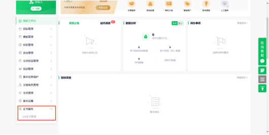 2. 左侧导航栏中,点击“证书服务-CA 证书管理”